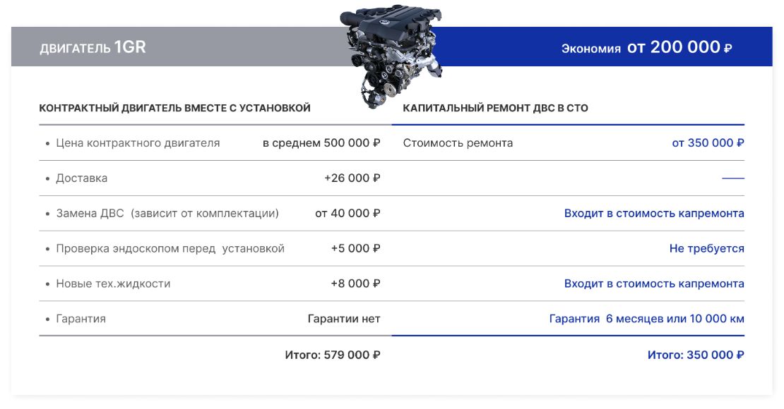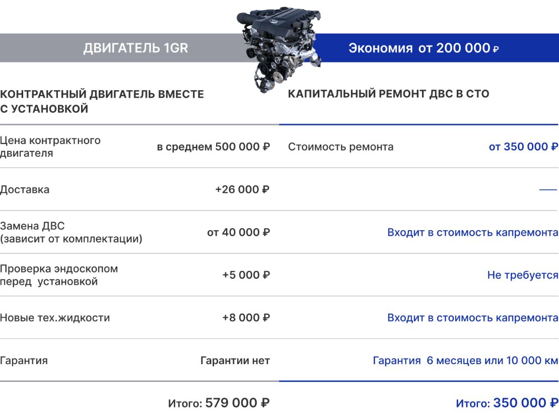 Покажем на примере двигателя 1GR реальную экономию на ремонте